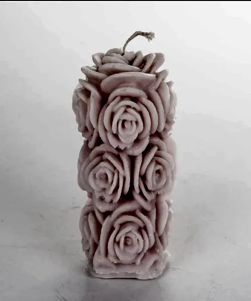 Silindir Pembe Gül Motifli Mum